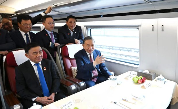 4月16日上午9时,越共中央总书记、国家主席苏林登上“复兴号”高铁,从北京启程前往广西,继续在中国的国事访问行程。