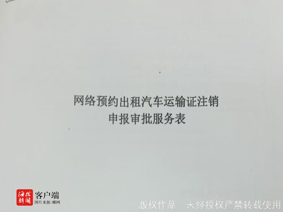 1月22日,三亚市营商环境建设局答复记者称,申请人提交《网络预约出租汽车运输证注销申报审批表》时,表中内容由申报者自愿如实填写,表明其对注销事项知情且无异议,并需本人签字捺印确认。申报人填写表格前,现场工作人员会明确告知目前三亚市已暂停办理《网络预约出租汽车运输证》核发工作,注销后无法新办。