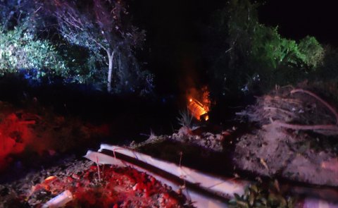 凌晨突发!一辆大货车失控坠崖起火,五指山消防紧急处置
