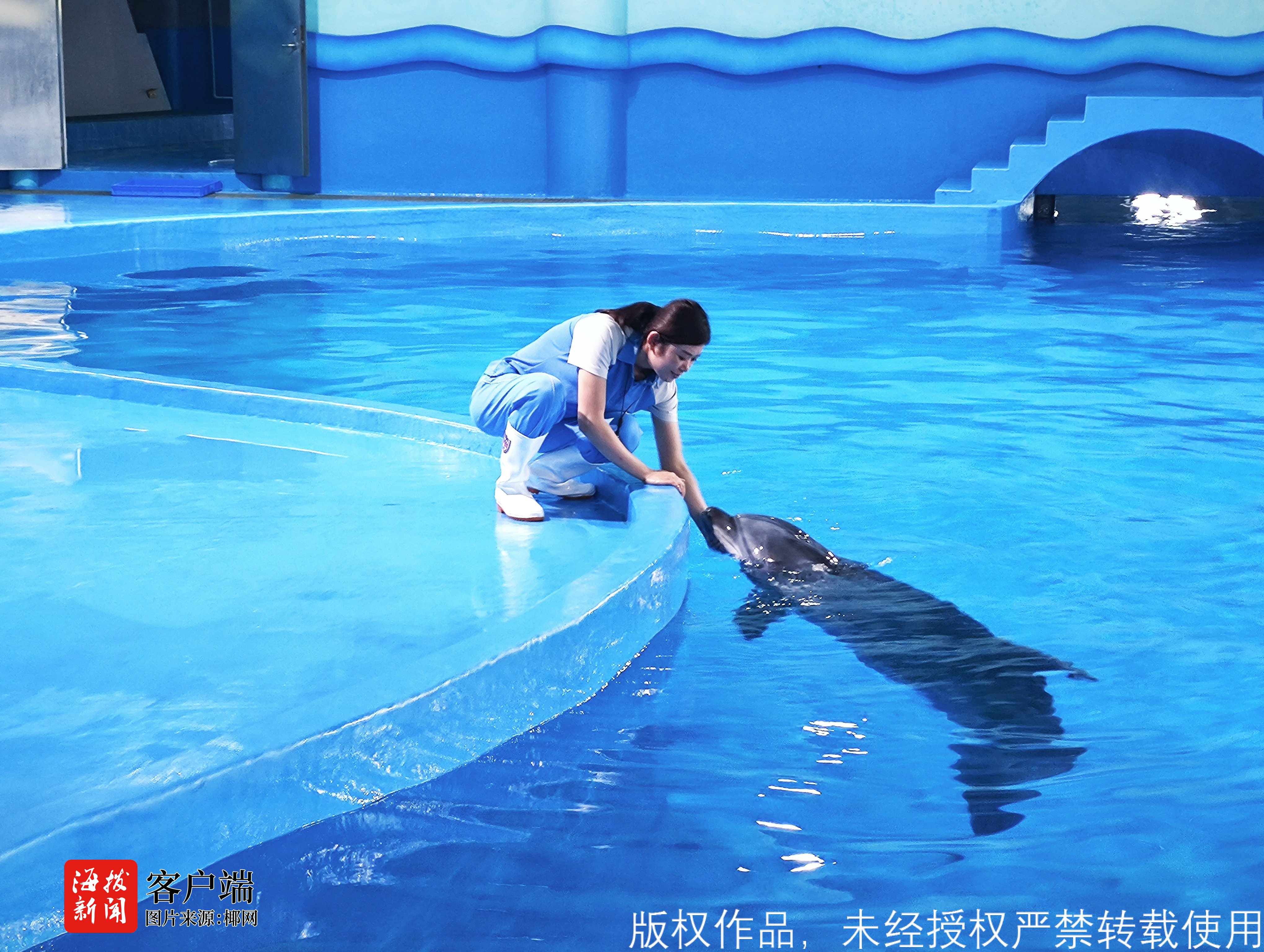 海洋乐园每隔一段时间便会为“切斯”做全面体检,确保其伤口已经完全愈合,各项指标正常,符合放生条件。“去年10月我们就开始对海豚进行野化训练,确保它回到大海后能够更好的生活。”据海洋乐园海豚驯养师吴花丽介绍,在喂养时,会将食物投放入池子内,让海豚自己寻找,锻炼海豚捕食猎食的能力;同时会减少海豚与人类的接触,让它适应独立生活,如此一来,回到大海之后才不会因为主动靠近人类而受到伤害。
